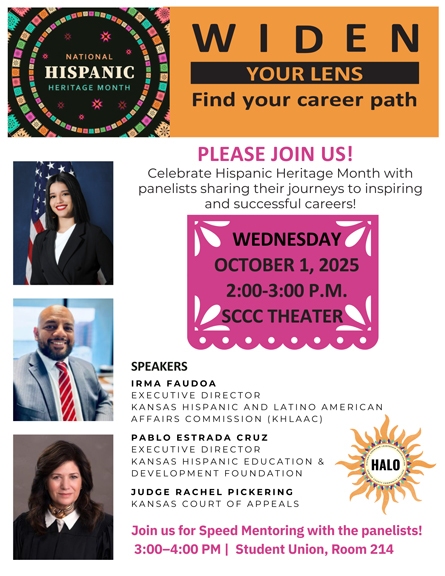 Seward County Community College will be presenting “Widen Your Lens: Find Your Career Path,” a panel discussion on the success stories of Hispanic professionals at 2 p.m.Wednesday in the Clifford and Irene Pepper Showcase Theater on the SCCC campus.