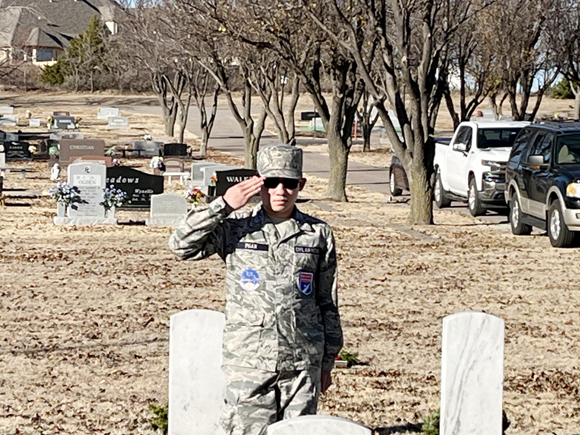 “Wreaths Across America (WAA) is a nationwide nonprofit fundraiser with the mission of remembering and honoring the sacrifice of the courageous individuals who gave their all for the freedoms we enjoy today, and teaching others about the great burden of loss carried by their loved ones,” CAP Cadet Chief Master Sergeant Joel Phan said. “WAA partners with the United States Civil Air Patrol and this year, we are again asking for donations to support this mission. The goal is to raise money and lay a Christmas wreath at the headstone of a fallen U.S. armed forces service member. $17 sponsors one wreath, four wreaths is $68, a group of 10 wreaths is $170, or there's also a corporate sponsorship for 100 wreaths is $1,700. All donations are tax-deductible. The deadline for all donations is Sunday, Nov. 9 because we have to consolidate everything and send it to the national organization in time for everything to get put together. We will take donations via cash or check, and anyone wanting to make a donation needs to fill out a form, which they can get from me, and people can contact me by phone at (720) 749-9038 or by email at