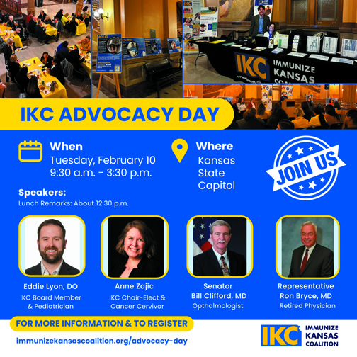 To register for Advocacy Day, visit www.immunizekansascoalition.org, go to the “About IKC” tab, and click on “Meetings.”