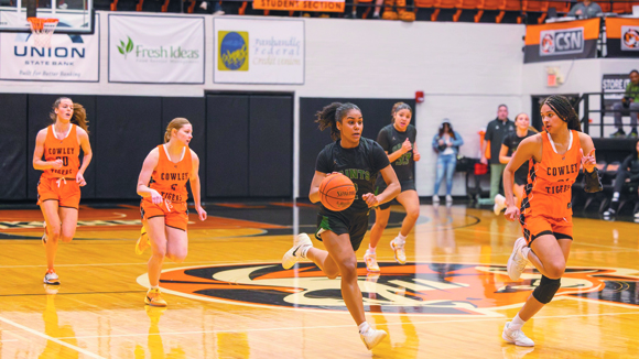 Au’Rayona Seals also turned in a big game with a career-high 14 points to go with four assists. Avery Marchino had eight points and eight rebounds, and Trinitee Holmes had seven points and eight rebounds.